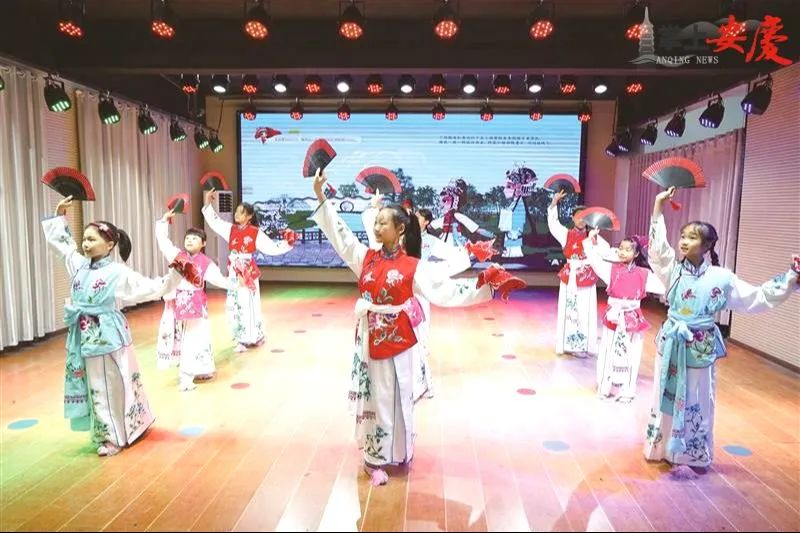 在“戏曲之乡”的怀宁县石牌镇,镇中心学校内处处闪耀着黄梅戏元素的光亮:“戏韵校园,文脉绵长”“让每一个童年都有戏,让每一本戏都精彩”……校墙上书写着不同戏曲内容标语;戏韵小剧场里,学生字正腔圆地学唱黄梅戏……小小的校园里,处处飘荡着浓浓的戏曲味。