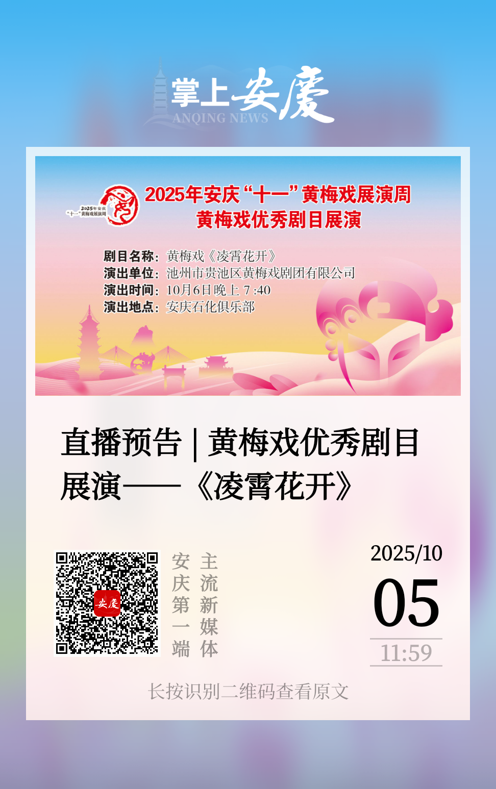 展演周直播预告 | 黄梅戏《凌霄花开》10月6日晚7:40在安庆石化俱乐部精彩上演