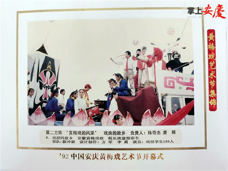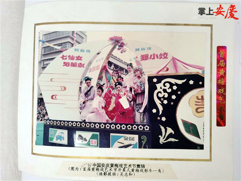 首届黄梅戏艺术节开幕式黄梅戏彩车一角。