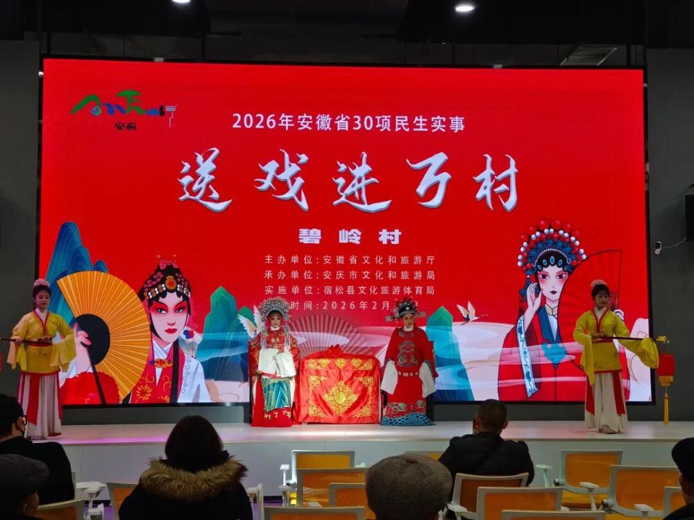 来自宿松县新黄梅演艺公司的演员们轮番登台,带来了《龙归大海》《对花》《女驸马》《洞房》等脍炙人口的经典剧目。熟悉的旋律响起,不少观众情不自禁地跟着轻声哼唱,现场气氛热烈而温馨。“平时在手机上听戏,今天在‘家门口’看专业人员演出,这感觉就是不一样!”68岁的碧岭村村民徐大爷激动地说。