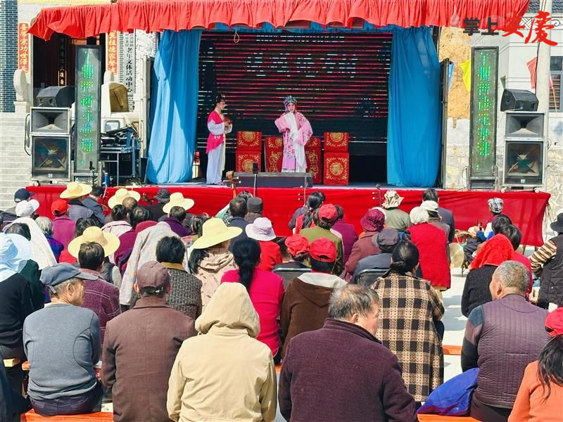 3月11日,金义剧社在怀宁县洪铺镇新龙村开展文化惠民演出,经典黄梅戏《罗帕记》在乡村舞台上演。